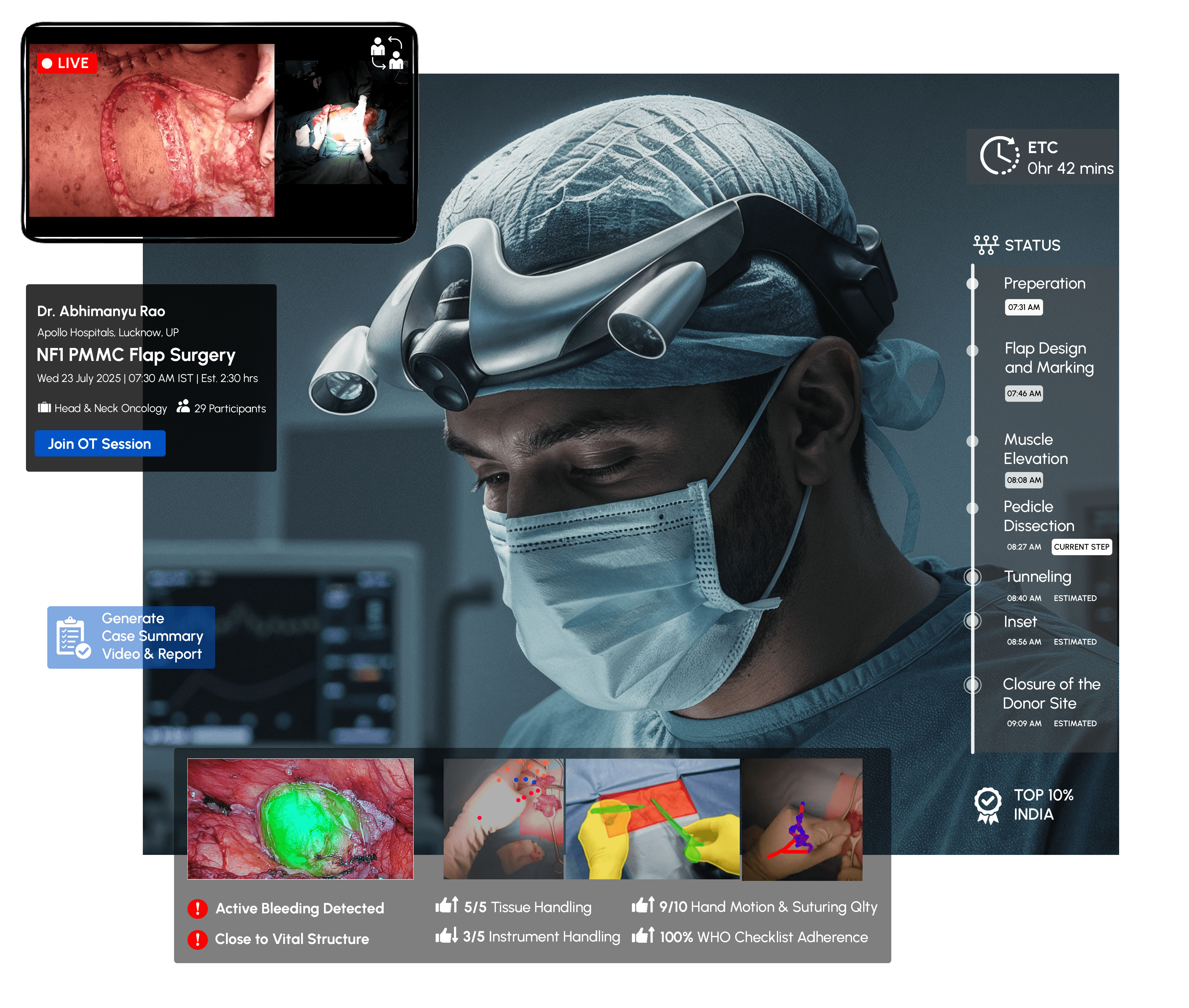 Nuevata’s Surgical Intelligence platform along with Head-mounted Device that captures, analyses, and delivers real-time feedback—transforming every surgery into a data-driven learning experience.